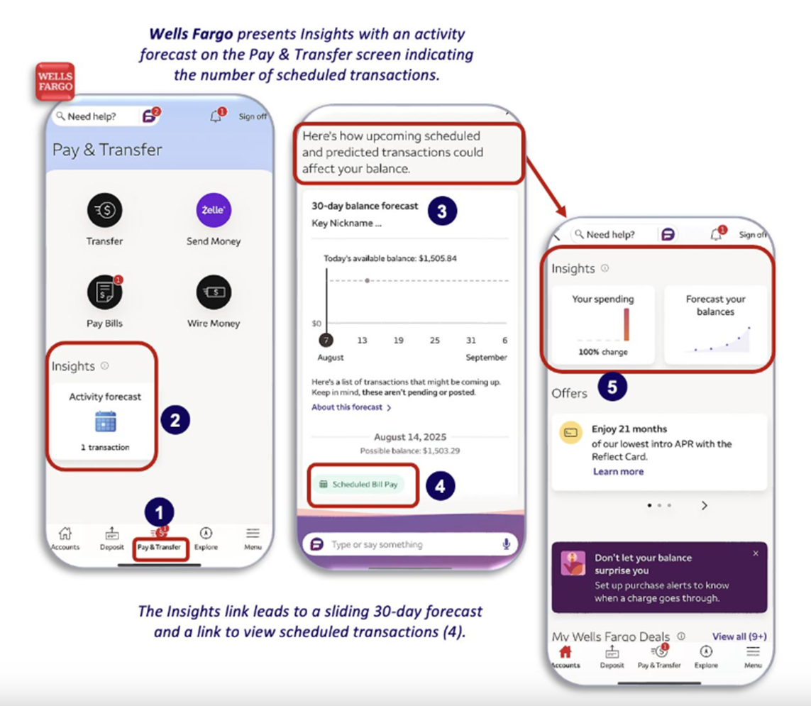 Real-time alerts. Business customers want their banking app to tell them about expected deposits, transaction patterns, and recurring and scheduled transactions. They want proactive notifications when account balances are at risk of overdraft based on scheduled transactions, or there’s a suspicious transaction.